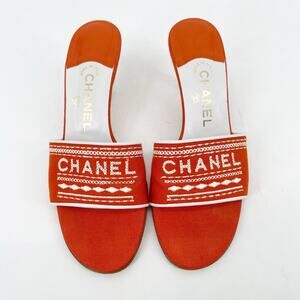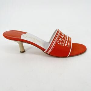 Chanel Vintage Orange White Logo Embroidered Kitten Heel Mule Slide Sandal