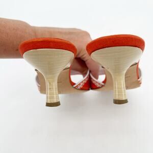 Chanel Vintage Orange Canvas Embroidered Kitten Heel Mule Slide Sandal EU 39
