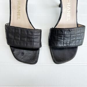 Chanel Vintage Quilted Black Leather Slide Sandals Stiletto Heel Size 36 (US 6)