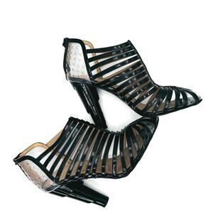 These are the Chanel Vintage 2009 Caged Pumps — a stunning and rare piece. With their black caged design and clear PVC panels, they combine edgy architectural lines with classic Chanel elegance. The open lattice style and pointed toe give them a dramatic yet wearable silhouette.