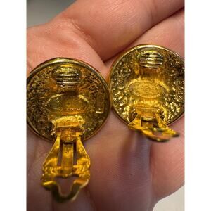 Chanel Vintage Round Button Clip On Earrings with Stars 80s 24k gold plated