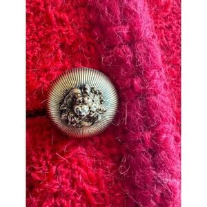 Chanel Vintage Tweed Wool Red Skirt Suit Set FR 40 US 8 Gold Lion Buttons