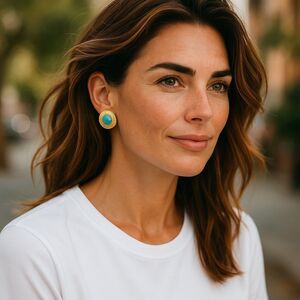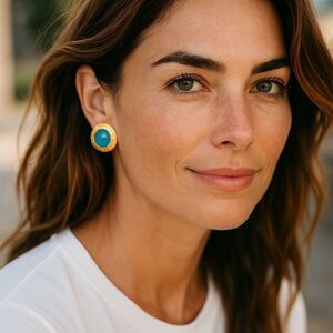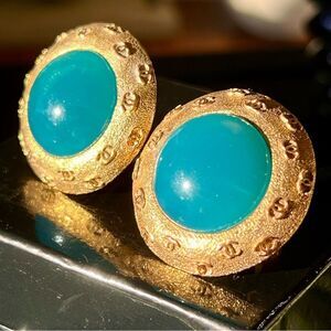 Chanel Vintage Gold Plated and Teal Earrings
