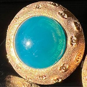 Elegant Chanel Vintage gold plated and blue teal s