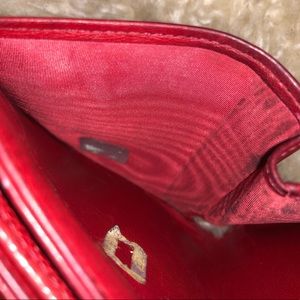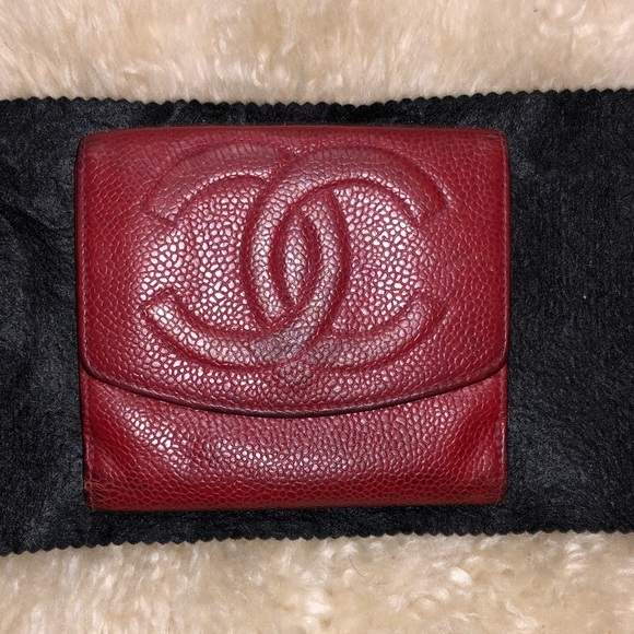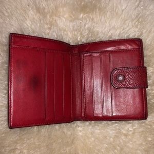 Gently used authentic red caviar leather bifold wallet with snap coin purse.