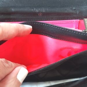 Chanel Wallet "Cambon" White CC Logo on Black Quilted Leather w/ Pink Interior