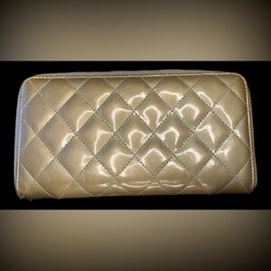 ♥️ Chanel Wallet Matelassé Gold Quilted Diamond Stitch Patent Leather Zip Around