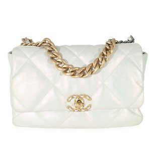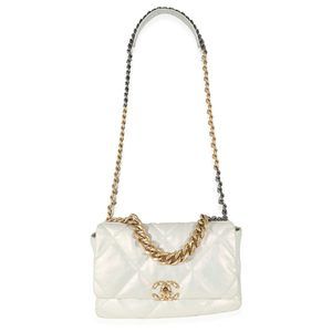 Chanel White Iridescent Calfskin Medium Chanel 19 Flap Bag