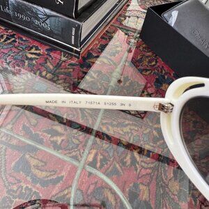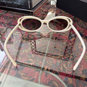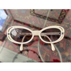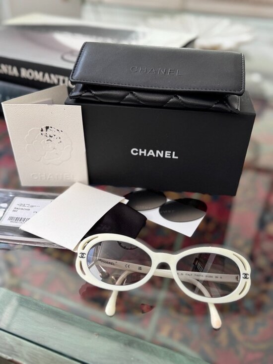 Chanel White Oval Sunglasses w Case, Wipe & Box NEW lenses