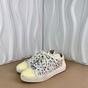 Chanel White Patent Leather Cutout Sneakers With Double C Logo Womens Size 37