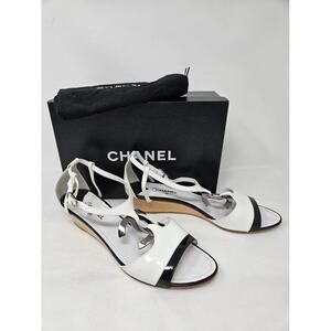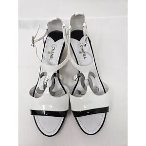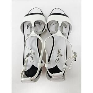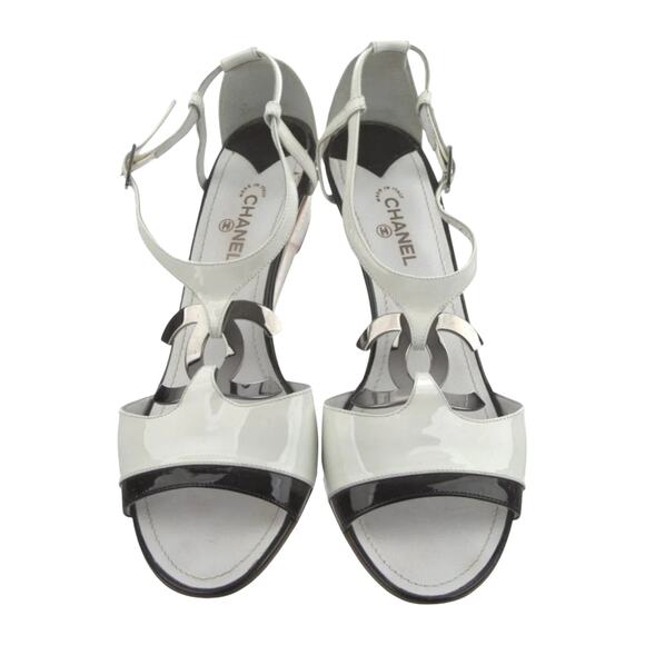 Chanel White Patent Leather Interlocking CC Sandals 41 EU