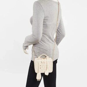 Handles: Leather top handle and a leather and chain entwined shoulder strap