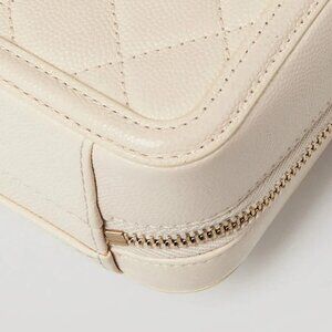 Chanel White Quilted Caviar Leather Filigree Mini Vanity Case Bag