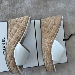 Chanel wedges, make me an offer. Step into elegance with Chanel's white slide sandals. Perfect for any occasion, these sandals offer both style and comfort.