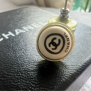 Elegant Chanel pierced earrings with iconic logo. In excellent condition. Includes original box. Perfect for any occasion. Adds a touch of luxury.
