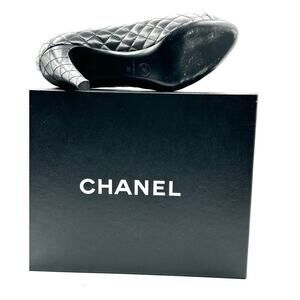Chanel Women's Black Quilted Lambskin Leather Cap Toe Pump Heels Size 38