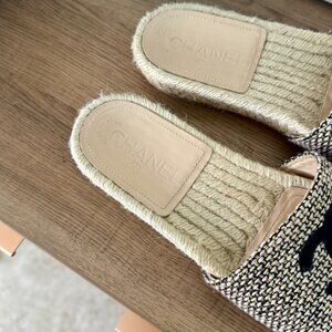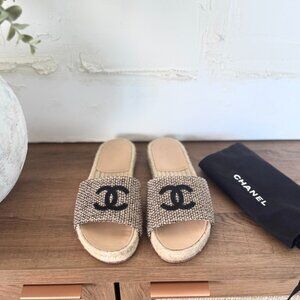 Chanel Women's CC Espadrille Slide Sandals Tweed