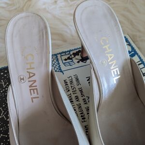 Elegant Chanel mules in a sophisticated cream and tan design. Perfect for adding a touch of luxury to any outfit.