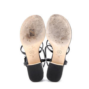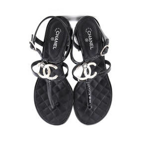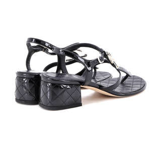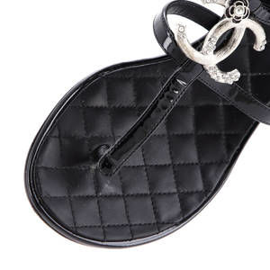 Chanel Women's Embellished CC Camellia T-Strap Sandals Quilted Patent
