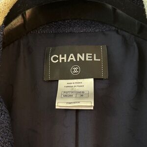 Chanel Women's Navy Tweed Blazer with Cream Trim