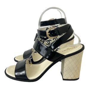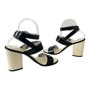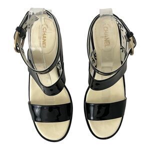 Chanel Womens Size 38.5 US 8.5 Black Patent Leather Ankle Wrap Strappy Sandal