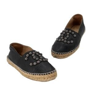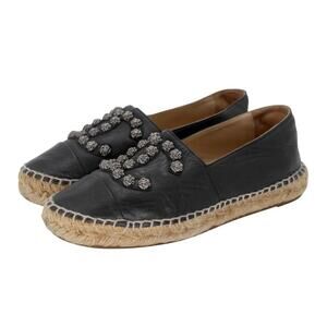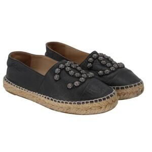 Chanel Woven Espadrille 35 Lambskin Leather Studded Cc Flats CC-0522N-0189