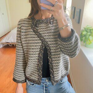Chanel Woven Open Front Metallic Cardigan Sweater