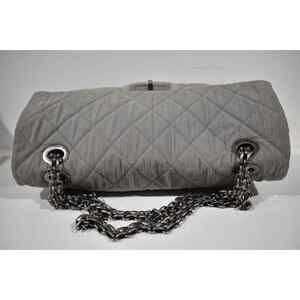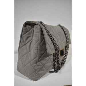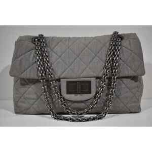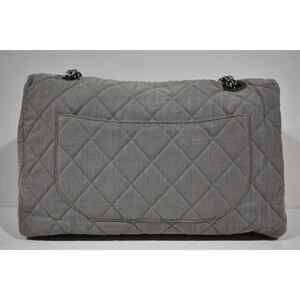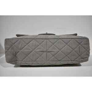 Chanel XXL Maxi 2.55 Reissue Airlines Classic Flap Grey Denim Logo Shoulder Bag