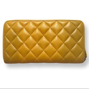 Chanel Yellow Lambskin Quilted Long Zip Around Wallet