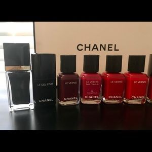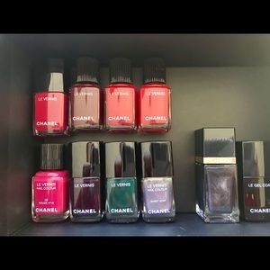 8 Chanel polishes nearly new (many unused) and LeGel top coat and Tom Ford 01 Blackout color (rare) Some Colors are discontinued or Chanel.com exclusives. Colors are