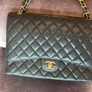 Black quilted handbag w gold hardware authentic and purchased from the Chanel boutique in soho. Worn a few times. Seems perfect and brand new!