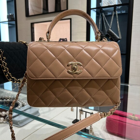 Authentic Chanel trendy cc small handbag. The most beautiful beige (nude-ish with warm undertone, almost like a latte color).