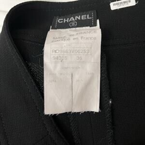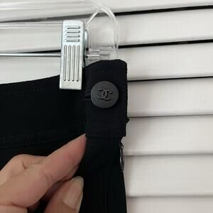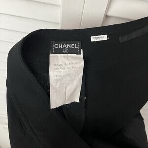 Chanel black pants, vintage 80's straight leg trousers high-rise size IT 36/US XS-S. 99% Wool, 1% Lycra. Quiet luxury, old money, minimalist, designer pants, flat front, no pockets, side zip and button closure.
