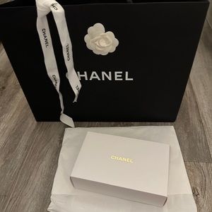 Chanel box, ribbon, wrapping paper.