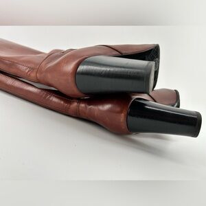 Chanel brown leather camel caramel heeled boots pull on 38.5 with dustbags only