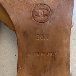 Chanel brown white leather heels mules slip ons slides 36.5