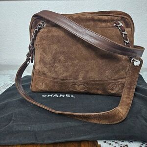 Excellent pre-loved condition Chanel suede brown shoulder bag.