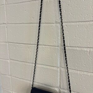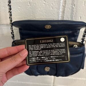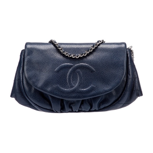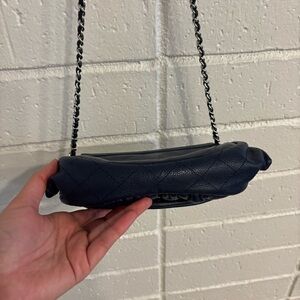 Chanel caviar leather navy blue half moon wallet on chain bag
