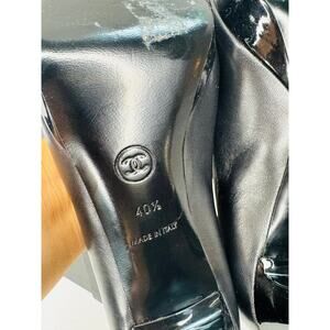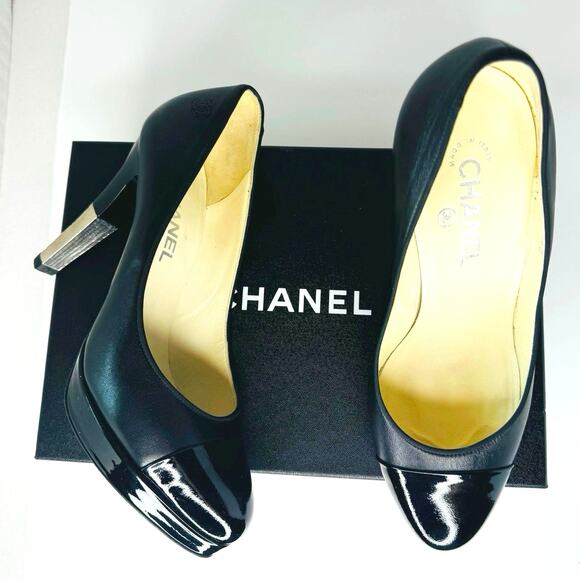 Chanel Black Patent Leather Toe Pumps with Metallic Silver Heel – Women’s Size EU 40.5
