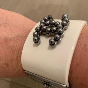 Chanel cuff in ivory color with grey pearls (CC logo)