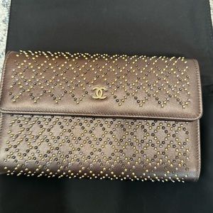 Chanel fine bead work shoulder bag. Gold brown tone. $2000