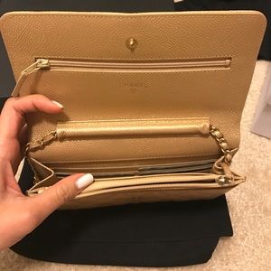 Rare color. Sold out everywhere. Gold caviar wallet on chain WOC with Gold hardware.