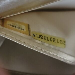 Chanel gold wallet with box. In very good condition. it has some discoloring in the coin pocket. Wallet can be worn as crossbody and definately holds a phone