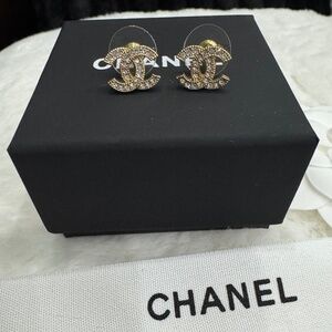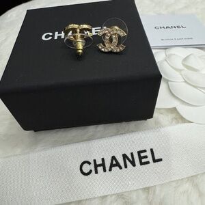 gold tone CC logo style classic pair no signs of wear or use Comes with full set of box and the purchase receipt is included with the earrings.quick shipping