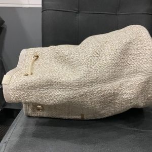 This beautiful bucket, bag and wallet set also trendy and beautiful. Could be worn for daytime or nighttime. The bag is roomy and comfortable. It has only been two times. There are absolutely no smells stains or damage to the products.