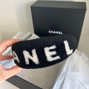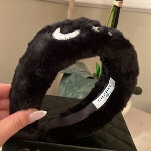 Brand new. Super cute Chanel headband. Black furry with white Chanel. Came limited edition with a bundle of the beauty line ♥️comes with headband only