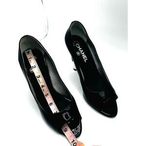 Chanel iconic classic Black Peep toe Patent Pumps size 39