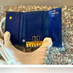 Chanel key case caviar leather with the iconic CC logo embossed on the front.