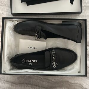 Chanel lambskin loafers are a luxurious and classic style of footwear crafted from high-quality lambskin leather. These loafers are known for their soft, supple texture and the sophisticated elegance that is characteristic of Chanel’s designs.