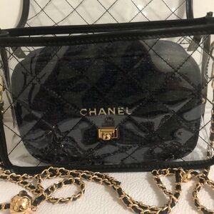 I have used a non branded pvc clear bag in black to hold the makeup pouch from Chanel to use the pouch as shoulder/ crossbody bag